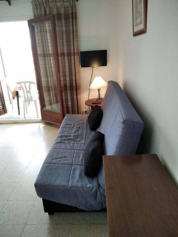 1 chambre avec 2 lits individuels, cuisine, salle de bain. Séjour-salle à manger avec divan-lit et grande terrasse.