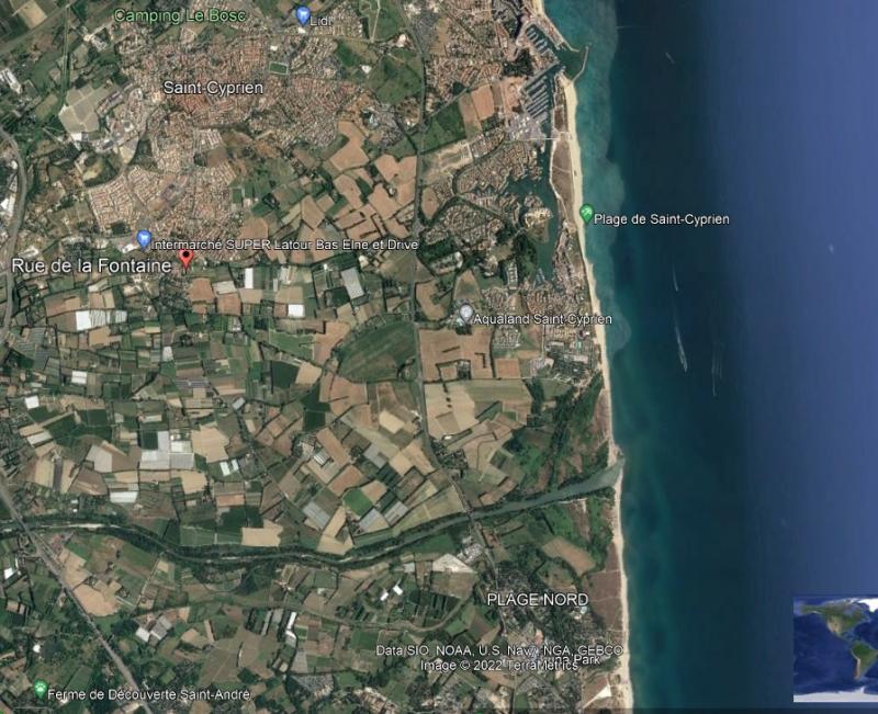 1er. étage : cuisine, séjour, 3 chambres, bain, terrasse, 100 m2.