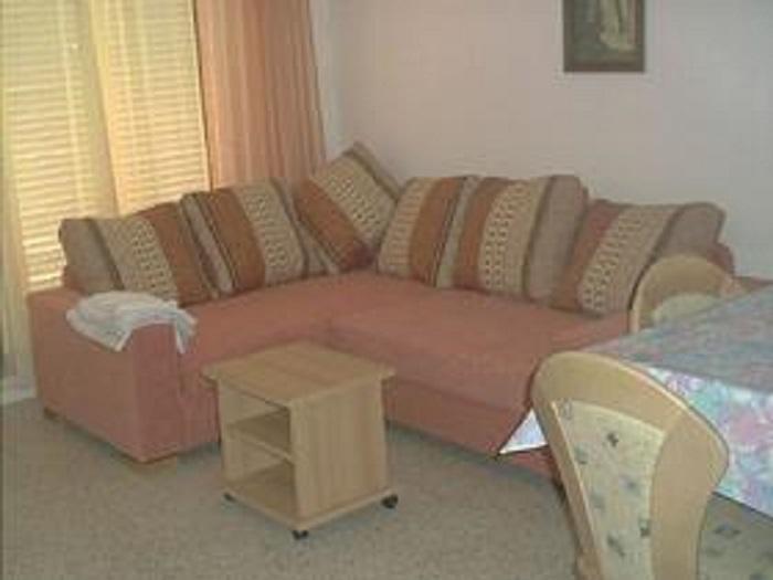 Composé de 1 chambre avec 2 lits individuels, salle de bain, cuisine, séjour-salle à manger avec divan-lit et terrasse. Meublé.